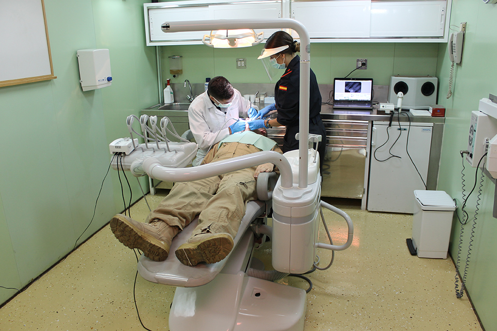 The dentist and his assistant during a surgery during the Operation Atalanta.