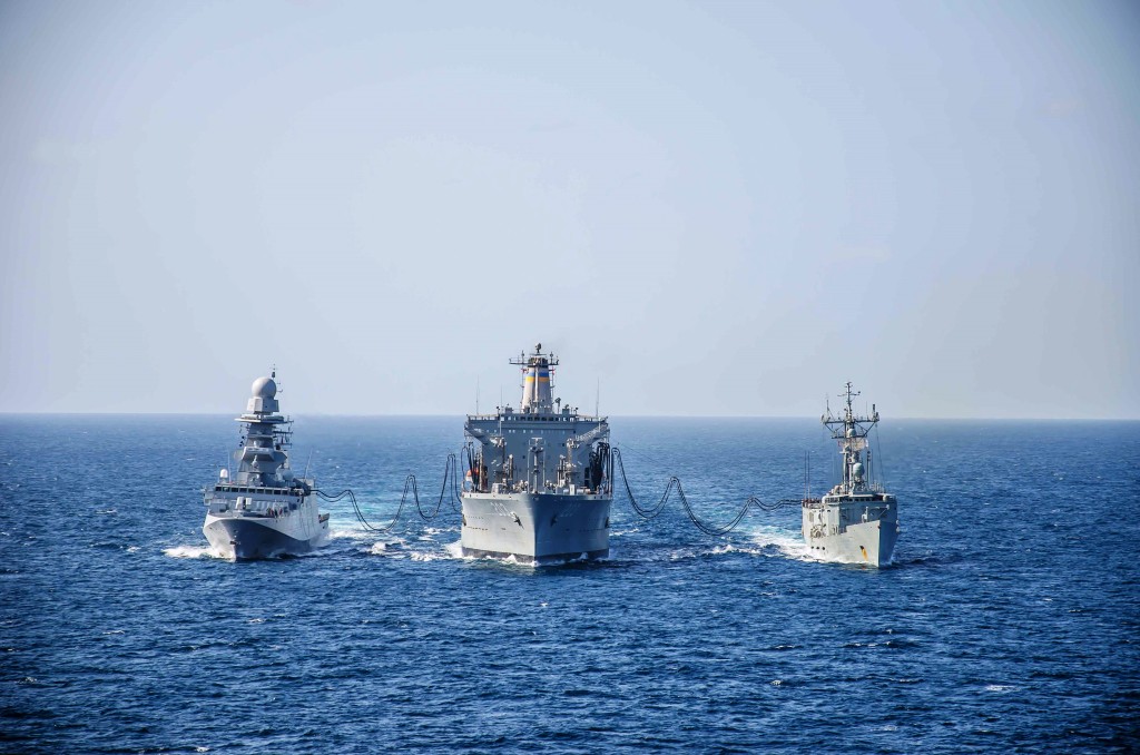 ITS Carabiniere and Spanish warship ESPS Victoria met with USNS Laramie and carried out a combined replenishment at sea (RAS).